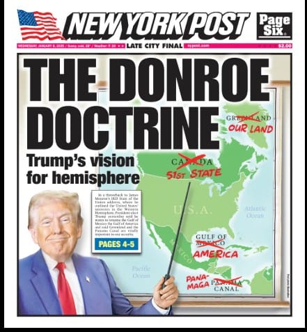() (Don‑roe Doctrine) (دمج بين اسم دونالد ترامب ودلالة على تغيير “مبدأ مونرو” المستمد من اسم سلفه الرئيس جيمس مونرو).