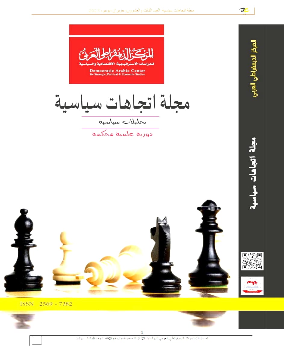مجلة اتجاهات سياسية : العدد الثالث والعشرون حزيران – يونيو 2023 المجلد 6 , دورية علمية محكمة تصدر عن المركز الديمقراطي العربي “ألمانيا –برلين” تعنى بنشر الأوراق البحثية والتقارير والتحليلات السياسية والقانونية والإعلامية حول الشؤون الدولية والإقليمية ذات الصلة بالواقع العربي بصفة خاصة والدولي بصفة عامة.